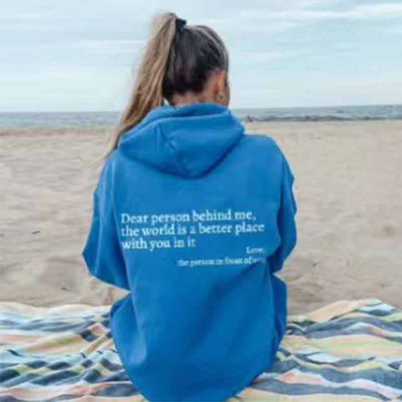 De sweatshirt "Dear Person Behind Me" is meer dan alleen een modestatement – het is een manier om op een betekenisvolle manier contact te maken met anderen.