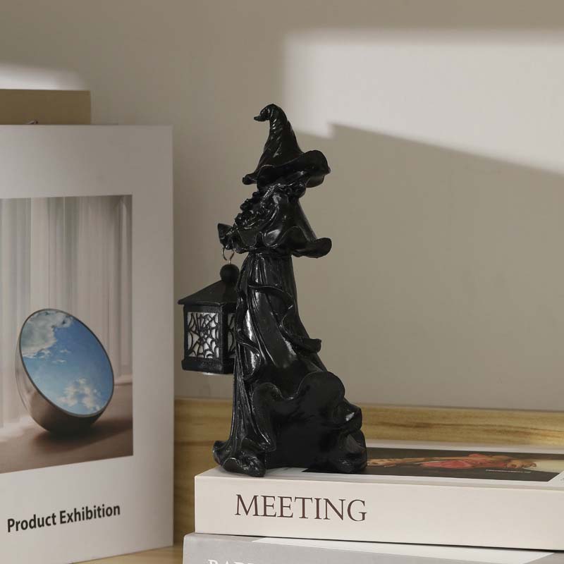 Deze lantaarndragende heks, gekleed in de hel, ziet eruit alsof ze uit de donkere nacht is afgereisd om je Halloween te verlichten 👻 ~ Levensechte details om je feest een beetje meer griezelsfeer te geven 🕯️!